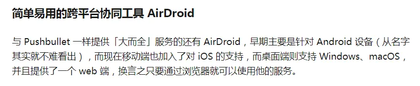 综合文件传输速度来看,最让小黑满意的自然是AirDroid了,不论是在不同平台之间的传输速度,还是文件传输的稳定性和便捷性,都做的相当优秀。