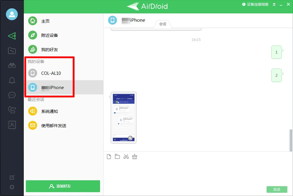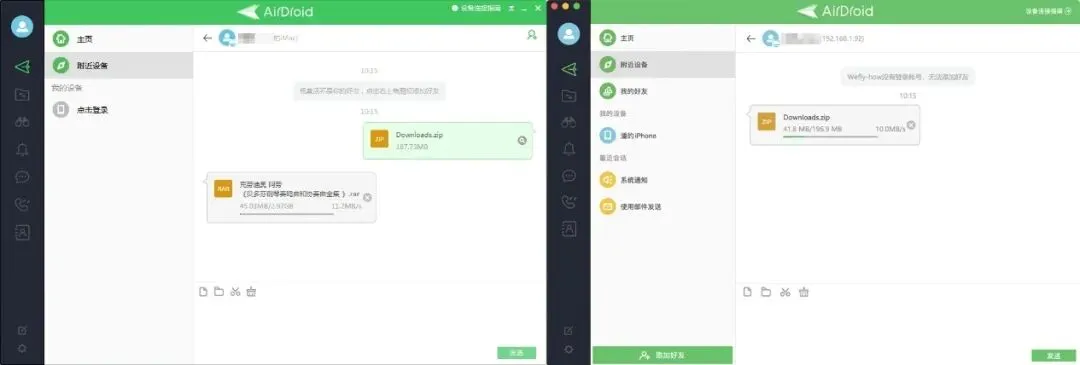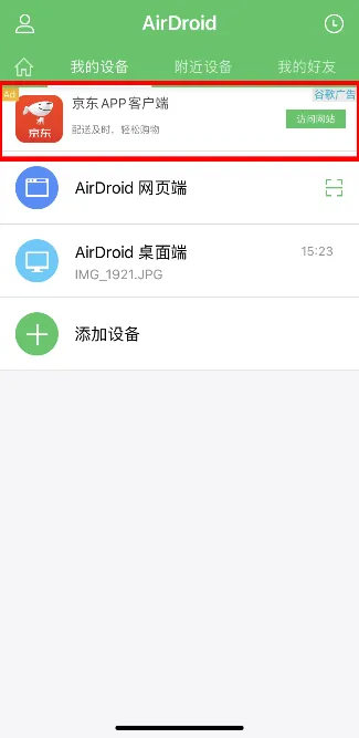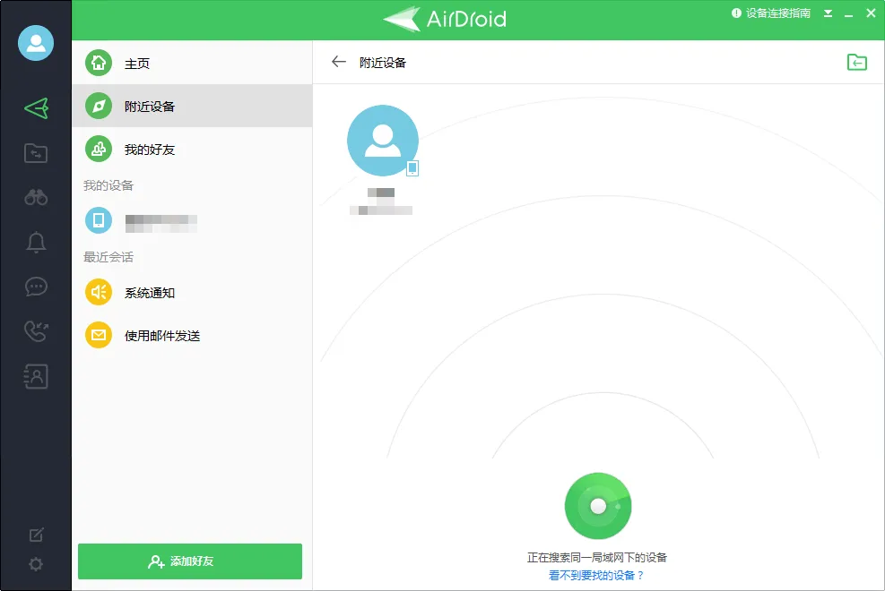 AirDroid搜索其他设备的方式共有两种,一种是通过定位和局域网搜索附近的设备并进行文件传输,而另一种则是在不同设备上登录同一个账号自动绑定。