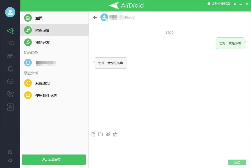 传输文件的操作也Feem一样,在搜索到可连接的设备后,只需要点击相应的头像,就可以建立连接并开始传文件了。