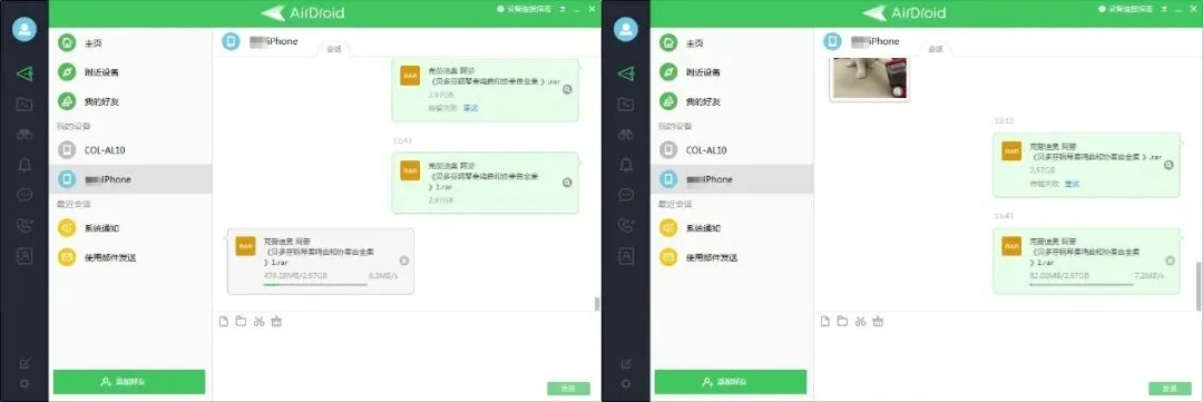 AirDroid的表现依然相当稳定,两端互传都能保持在不错的水准。