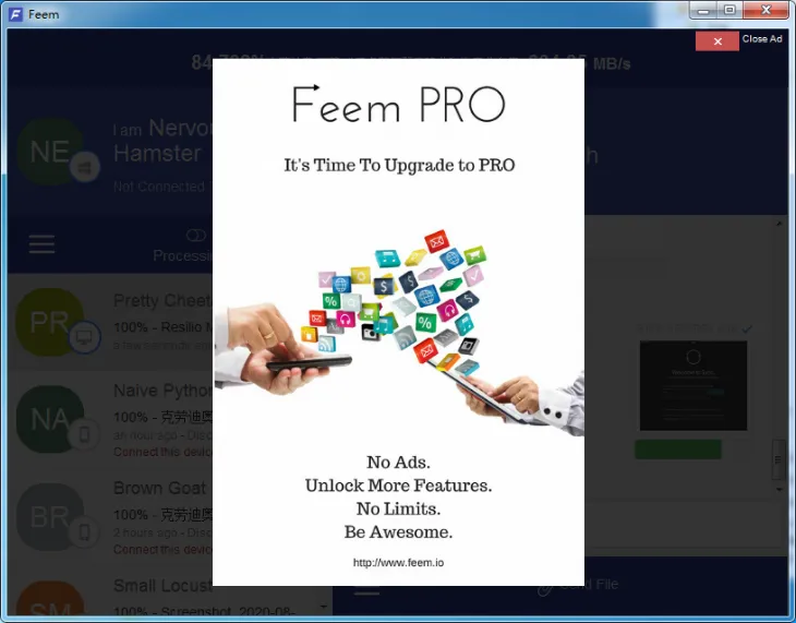 至于Feem么,则让小黑又爱又恨:从各个角度来看,它都有还过得去的表现,然而不论是电脑端还是手机端,每次传输都要手动关闭两个广告,让本来便捷的操作反倒显得不便捷。