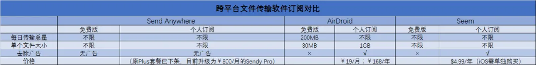 而且,Send Anywhere和Feem的套餐列表都是英文,可能许多人也没什么耐心去看。
