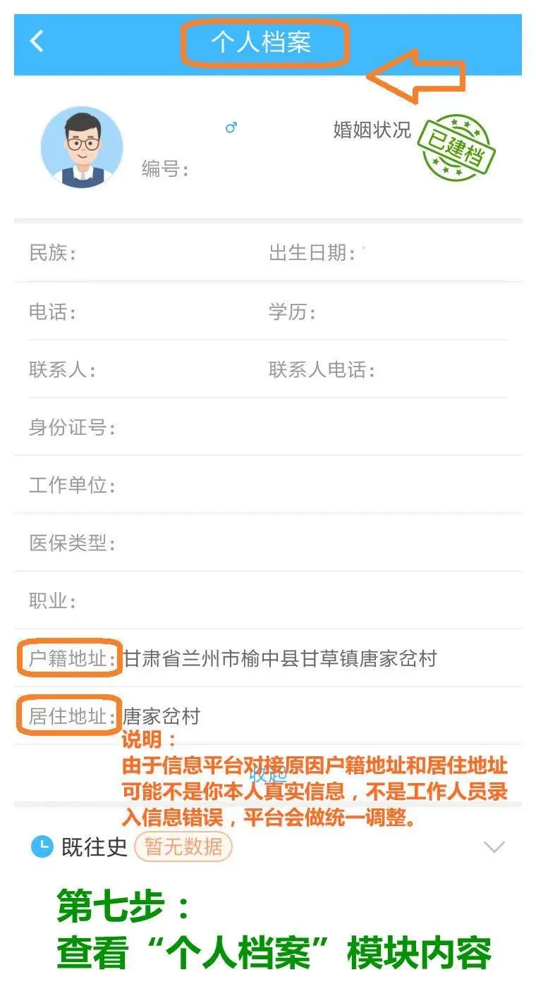 *个人档案信息主要来源于所居住辖区的社区医疗服务机构记录的信息,比如您的姓名、出生日期、工作单位、疾病既往史、生活环境等等信息。