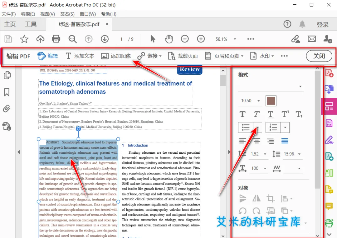 下面就拿编辑Pdf举例,大家可以清楚的看到的看到点击编辑后文档中文字可选中进行编辑操作,另外右边格式可对其字体、颜色、间距、序号等设置,另外顶部也可添加文本、图像、链接、页眉页脚、水印等。