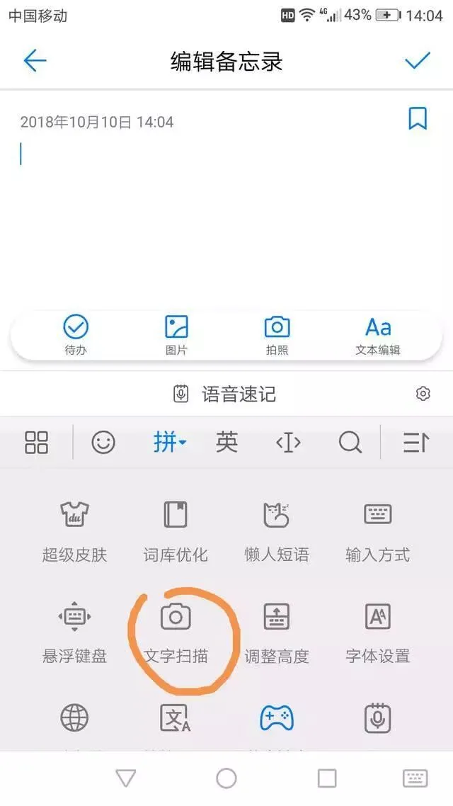 一、使用输入法中的【文字扫描】功能
