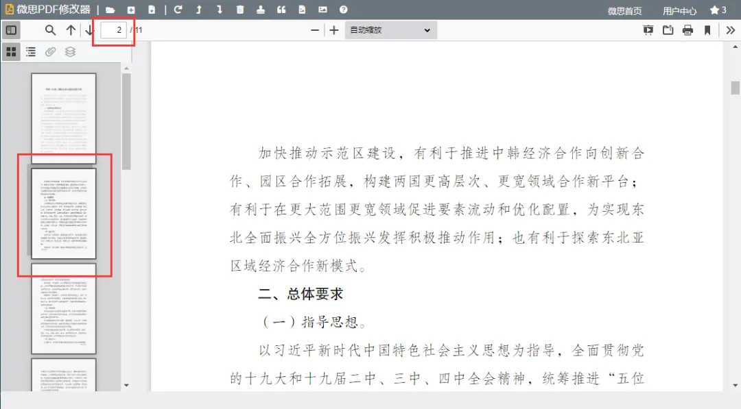 当文件加载后,会显示出所有的工具按钮。大部分工具都是针对选中页面进行操作的,您可以通过预览窗口中选择需要操作的页面,或直接手动输入需要操作页面的页面数即可跳转到相对应的页面。