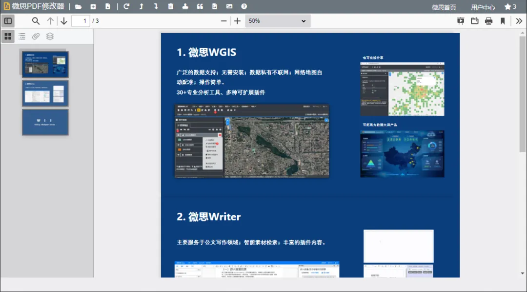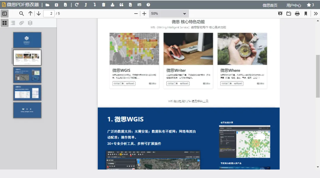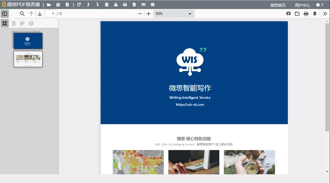 微思PDF编辑器可以让您在无需安装任何软件的情况下,实现PDF文件的合并、删除、旋转、提取文本、禁止复制、添加水印等功能。虽然本工具是在线工具,但是与微思的其他工具一样,本工具也不会上传您打开的任何pdf文件到服务器,所有操作都是在您的本地通过浏览器的算力来实现的。