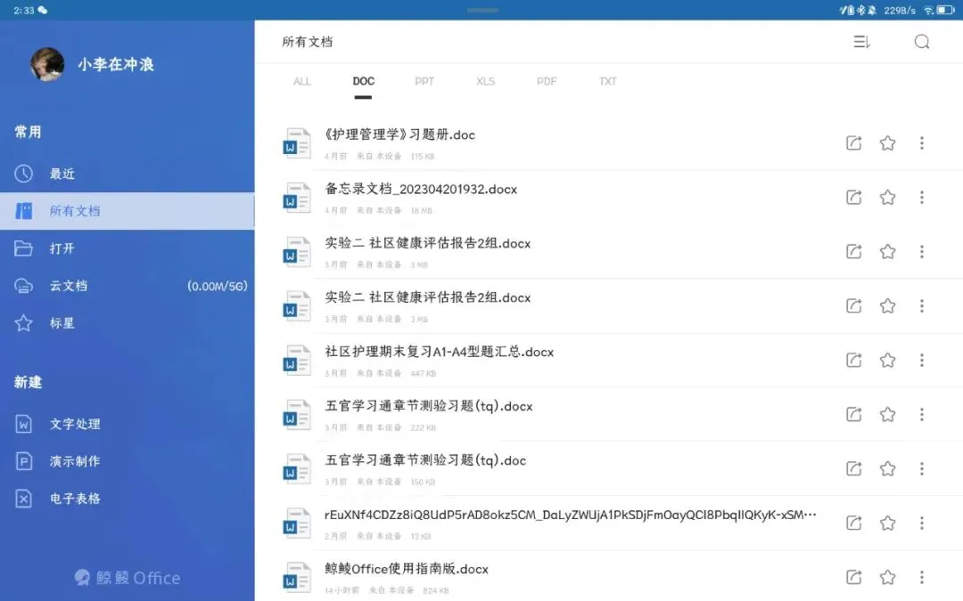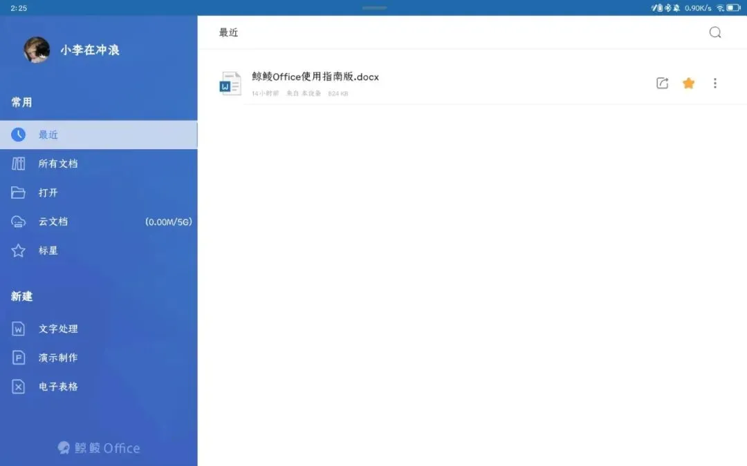 使用鲸鲮Office,你可以发现它的界面和PC版一样,交互逻辑操作也十分简单流畅。为了提高生产力,建议搭配鼠标和键盘一同使用。