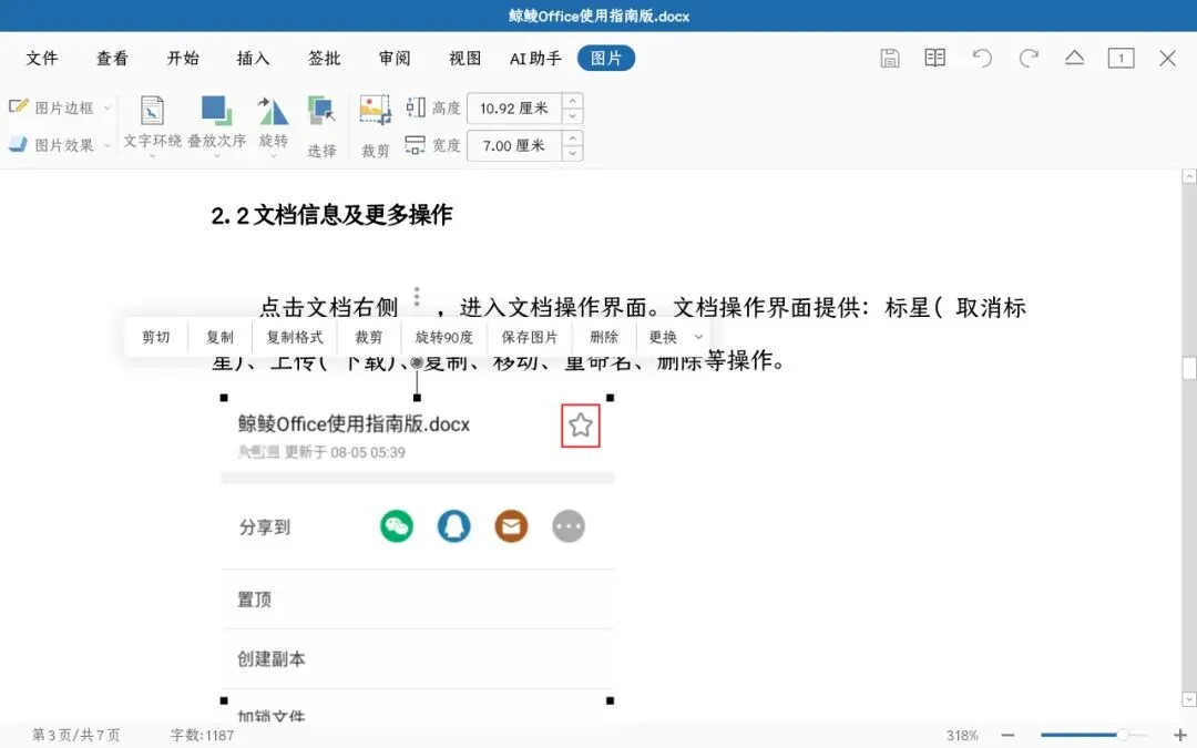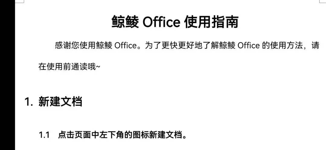 鲸鲮Office的文字处理功能(Word)支持文本编辑、文字段落设置、文本查找,还可以插入和操作图片等对象。