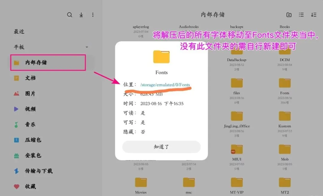 字体文件存放路径:位于用户内部存储目录下的Fonts或鸿蒙设备PCEngine/.fonts/文件夹中。