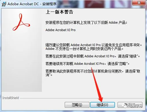 1、解压后,双击打开setup.exe。(因为小编之前安装过Acrobat XI,因此有如下提示,如果没有安装过XI,那就就直接到了第三步)