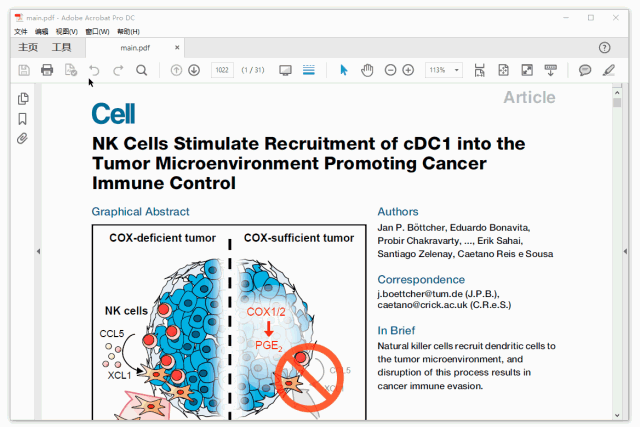 下面介绍一款软件,非常容易上手,基本上可以像编辑ppt一样编辑pdf文档,嗯,它就是Acrobat DC。下面以一篇cell文献为例,看一下Acrobat DC的一些常用功能吧。
