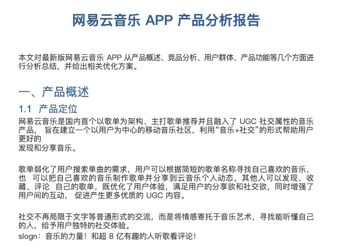 注意:该文档为word文档,需求该模板的小伙伴,请在公众号内回复关键字「网易音乐分析报告」。