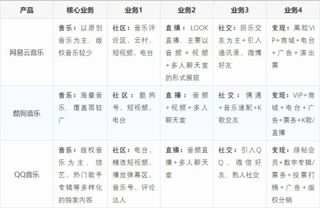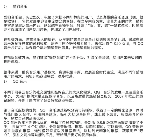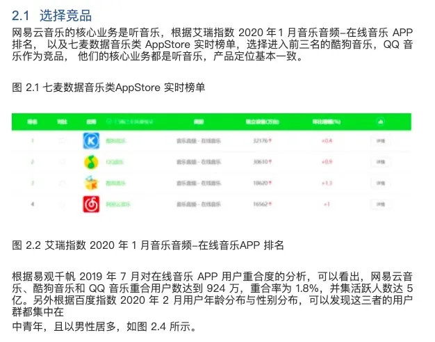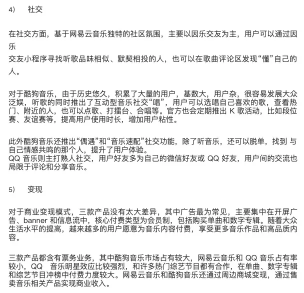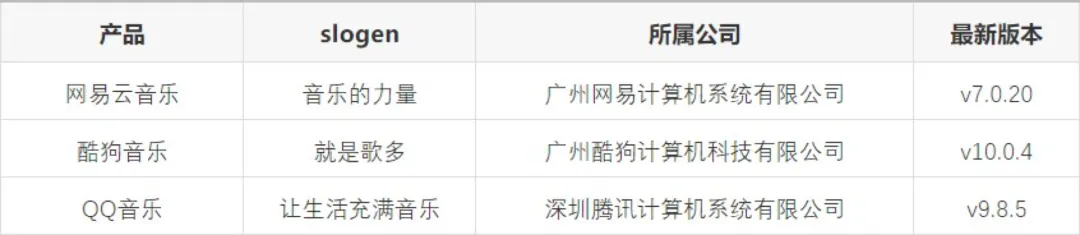 综上,酷狗音乐、QQ 音乐与网易云音乐市场定位基本一致,符合竞品选择基本原则。