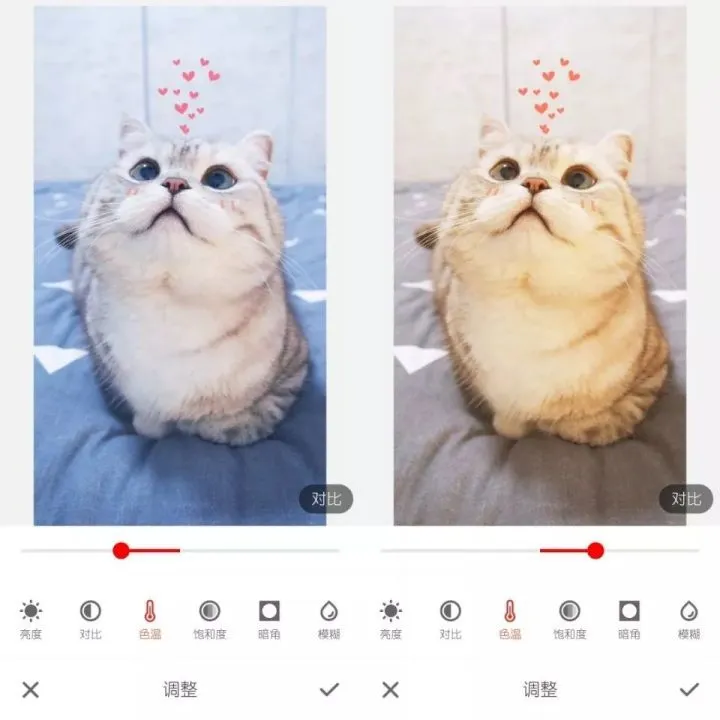 就像上面说到的那样你可以通过调节图片的“对比度;饱和度;色温”,运用熟练的话,就相当于拥有一款DIY的滤镜。
