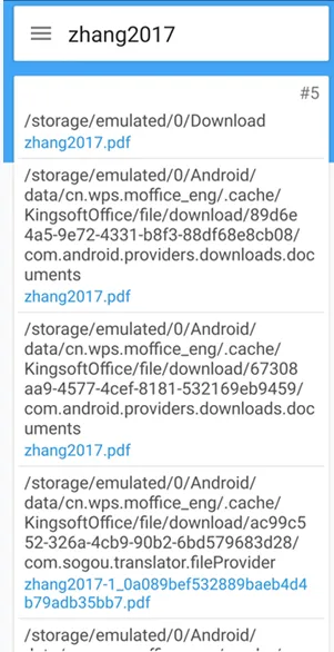 这款软件的名字叫做快速搜索,适用于安卓系统,同样的,咱们拿昨天推文中下载的那篇论文名字举例子,名字还没有输入全结果就出来了,可以说是瞬发。然后咱们在这个app里直接点击搜索到的文件就打开了,可以说非常的方便