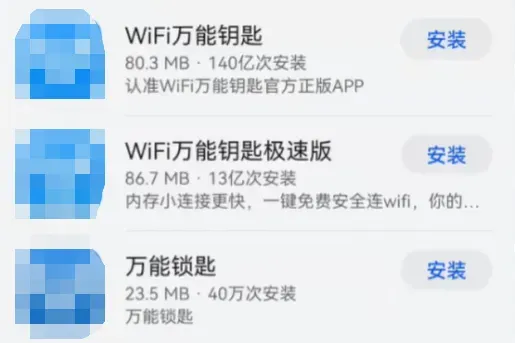第四类是WiFi助手类软件,为了随时随地连接WiFi,很多人下载了WiFi助手,但是它们会弹出一堆广告弹窗,甚至自动捆绑下载垃圾软件,给手机带来安全隐患。