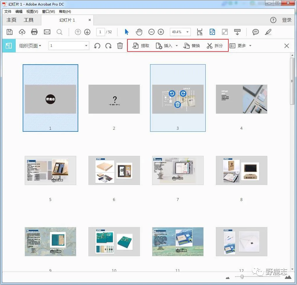 在这里可以进行页面的删除、插入、替换,以及拆分: