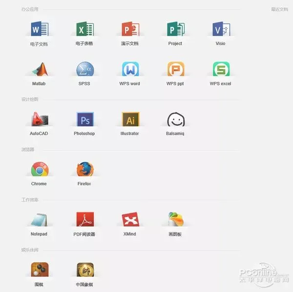 在Uzer里简单注册一下帐号就可以使用它里边的丰富的在线软件资源了,具体目前有些啥软件,如下图所示。从图中我们可以看到Uzer支持了目前流行的办公文档类型及设计文档类型,甚至还能在浏览器中模拟出Chrome及Firefox。