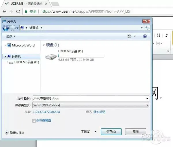 图9 可以保存文档入Uzer云盘