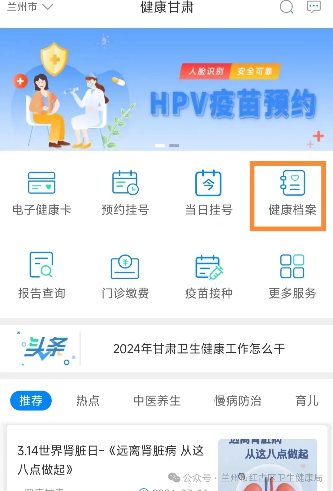 4.进入【健康甘肃】页面,点击【健康档案】,