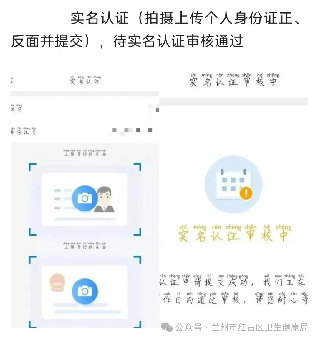 6.登陆成功后,点击【健康档案】,进行【实名认证】,上传身份证正反面,