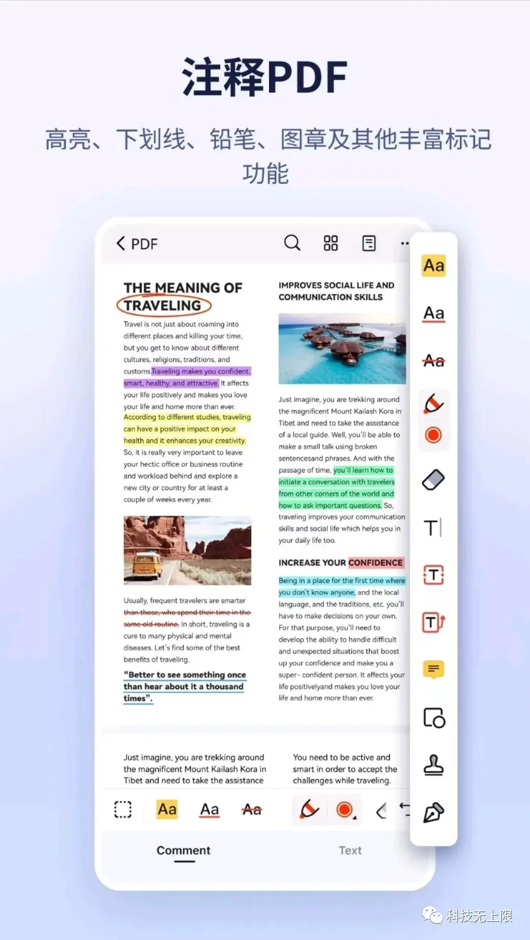 2、可以使用高亮、下划线和删除线等批注工具来标记重要内容。还可以使用默认图章,如批准、未批注和机密,并使用精美贴纸表达自己。