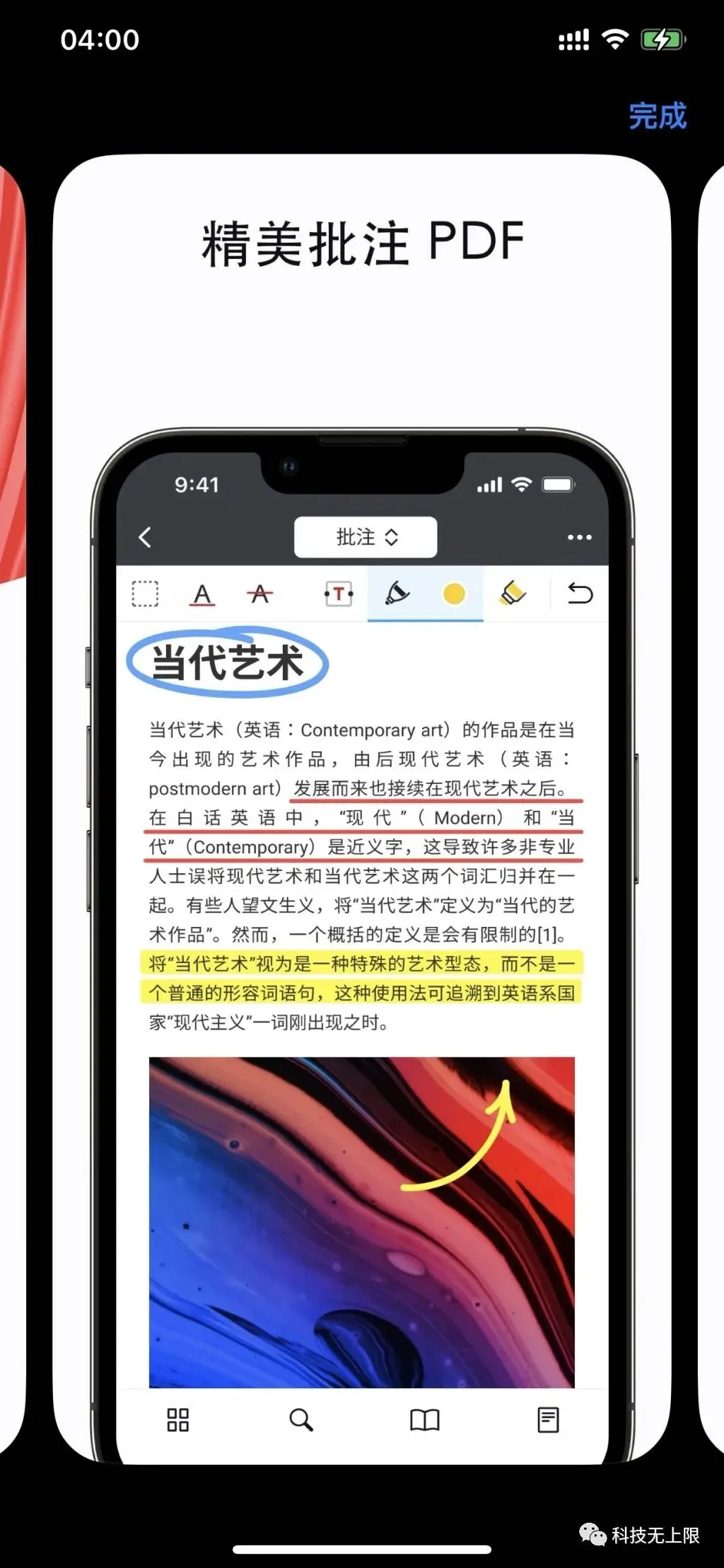可以使用手指或触笔添加注释,包括高亮、标记、添加备注和编辑。