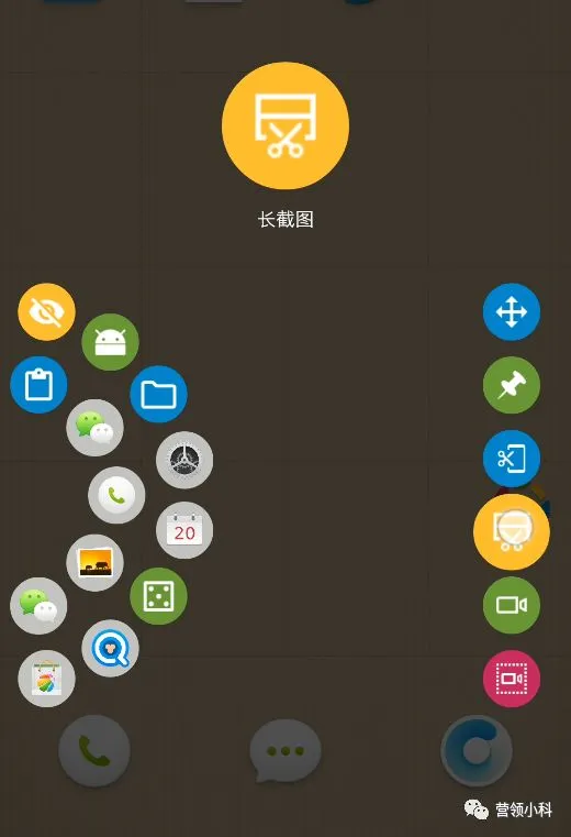 同时它也支持长截图,我们按住悬浮球,右边有很多图片,其中黄色的就是长截图