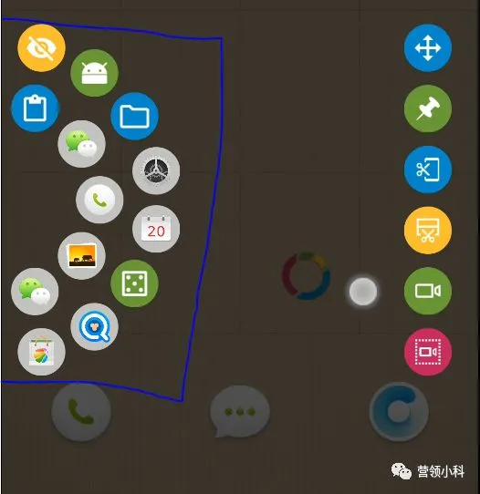 操作方法:长按悬浮球后即可直接打开预先设定好的常用程序(左侧的半圆形)