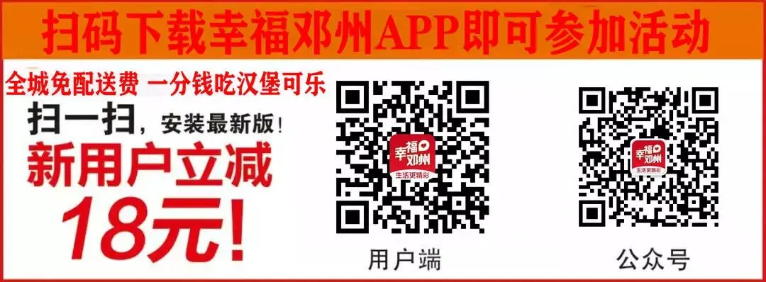 Word天!幸福邓州APP上线了,新用户立减18元!更有1分钱吃汉堡!