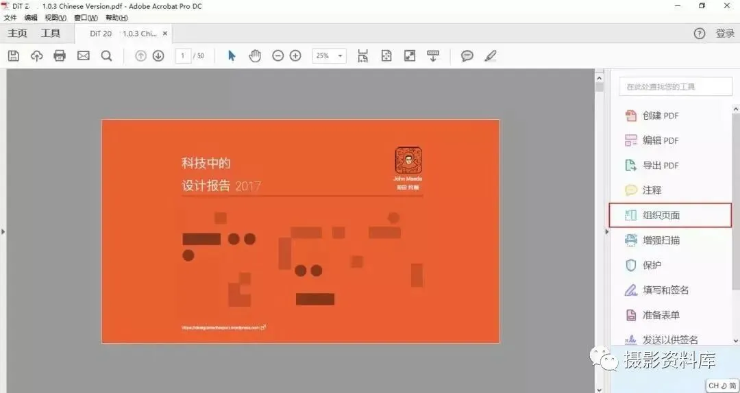 点击软件界面右边的「组织页面」,就可以对PDF文档的页面进行删除、旋转或者导入新的文件(图片、PDF文件、网页、Word、PPT、Excel等)