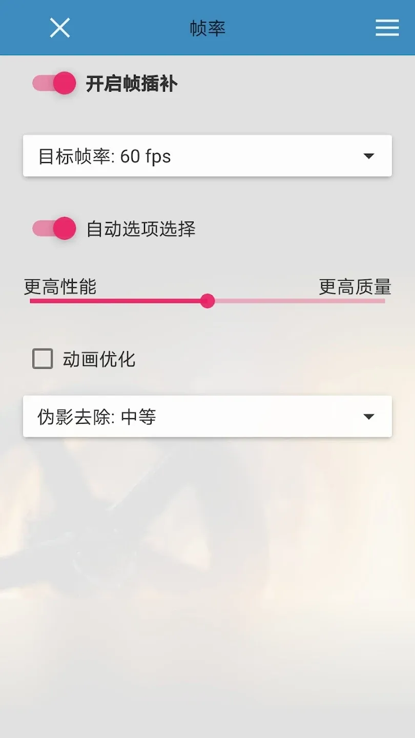 通过「SVPlayer」支持将任何视频转换为 60 帧,甚至更高。例如如果你的手机支持更高刷新率,也可以试一下是否能流畅补帧到90帧。但是需要注意的是如果手机性能跑不动高刷新率补帧,强制设置更高帧率可能会导致掉帧。