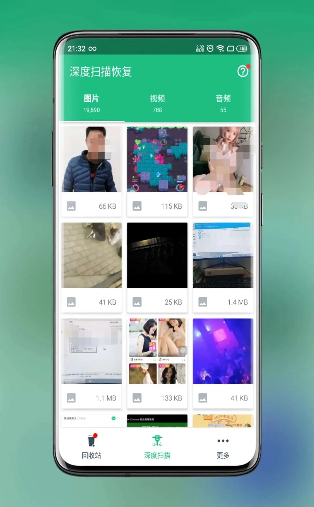 失误删掉文件的小伙伴就可以使用这款工具进行恢复了,因为这款扫描工具的作用。就是最大程度的把手机里的文件都呈现出来。
