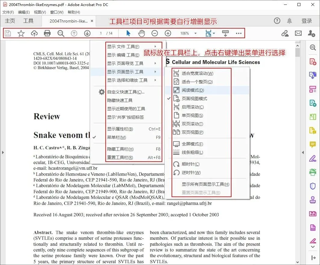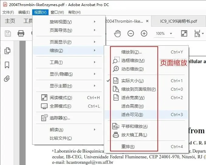 在浏览文件时,可以选择不同的页面显示,或利用缩放菜单,可对显示内容进行缩放,以达到更好的浏览效果。