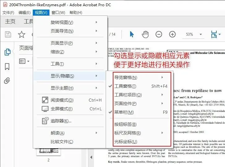 从菜单“视图” > “显示/隐藏”中,可以选择要显示的各元素。