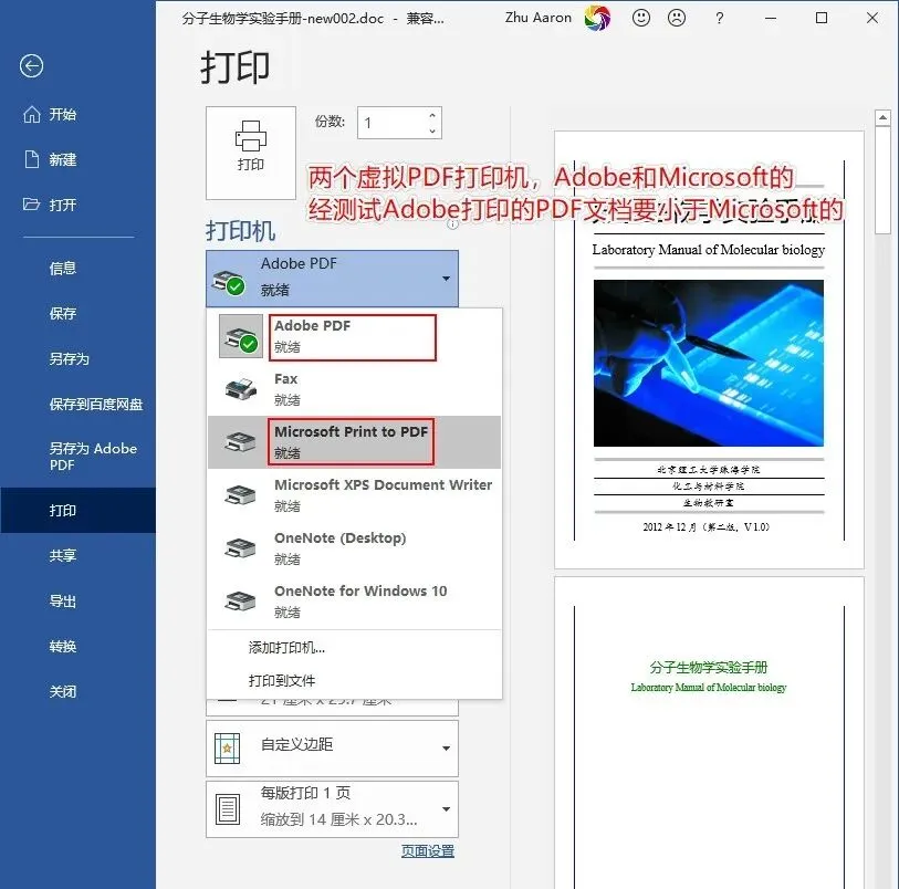 经测试 Adobe 的虚拟 PDF 打印机创建的文档要小于 Microsoft。