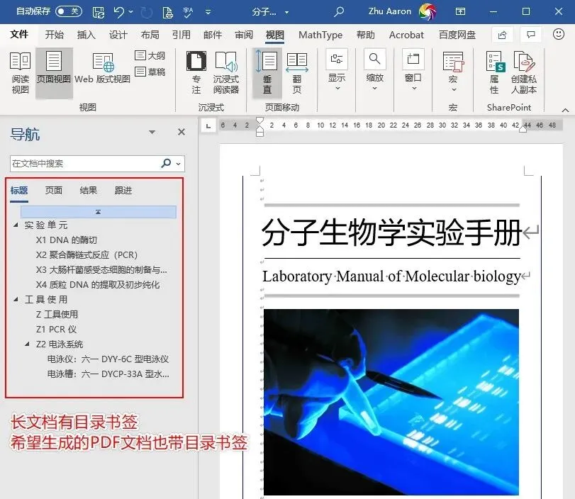 如果是长文档,并且文档有目录,希望生成的 PDF 文档带有导航书签,这时应该利用上面方法②和③,而方法①和④生成的 PDF 文档是不带导航书签的。