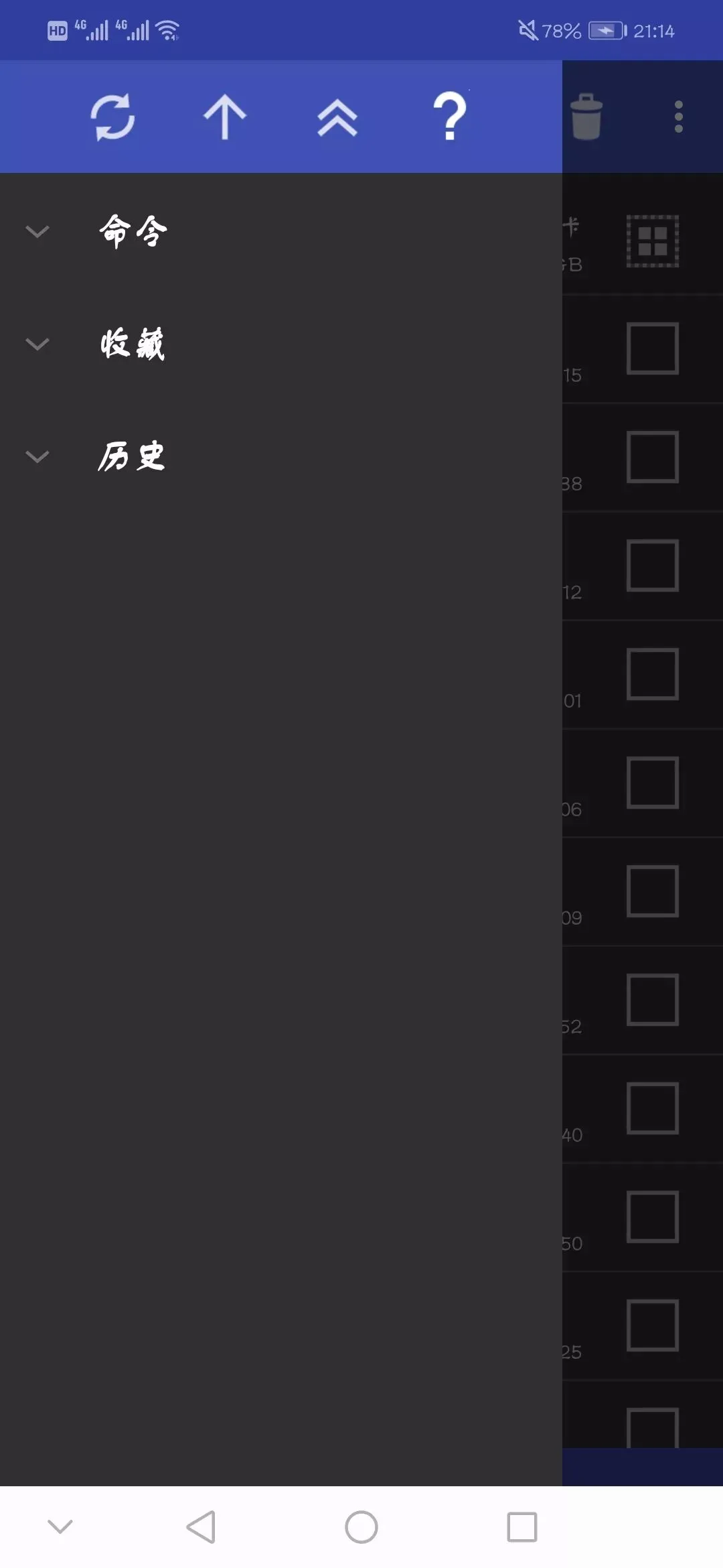 在左上角有一个菜单键,点开后可以查命令、收藏和历史,