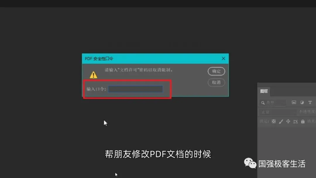 最近在用ps帮朋友修改pdf文档的时候,发现用ps打开提示需要输入安全口令才能取消限制,