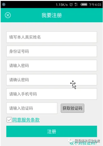 输入手机号,密码点击登录进行登录。首次登录需要先进行注册,点击登录界面右上角的注册按钮,进行注册界面,如下图所示: