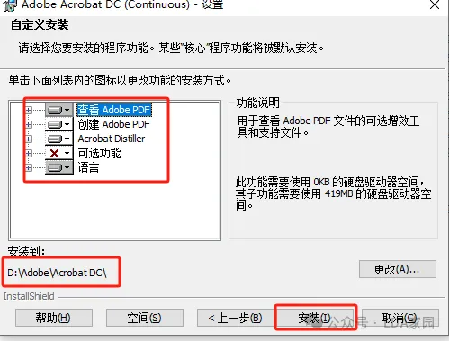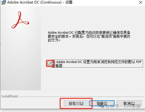 2、设置默认pdf工具,进行自定义安装,如下图所示。