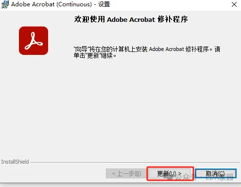 7、选择更新,继续下一步安装,如下图所示。