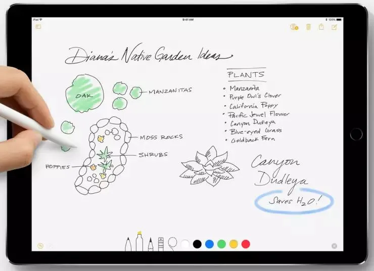 即时备忘录:用 Apple Pencil 在锁定屏幕上轻点一下,就可以立即开始做笔记。用户创作的所有内容,都将保存在备忘录 App 中。这个功能不免让人联想到三星的 Note Pen。