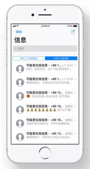 信息 App:App 抽屉经过重新设计,而新一代过滤技术可以识别并屏蔽可能的垃圾信息。苹果称,“下载腾讯手机管家等第三方 App 来侦测可能的垃圾信息,并将此类信息隔离在单独的文件夹里。”(苹果给腾讯打广告,还真是相爱相杀。)