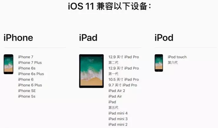 从官网公布的机型来看,iPhone 5、iPhone 5c、以及第四代 iPad 已经被抛弃,将不能升级新一代 iOS 11 系统。