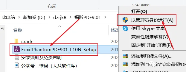 2.鼠标右键FoxitPhantomPDF901_L10N_Setup以管理员身份运行;