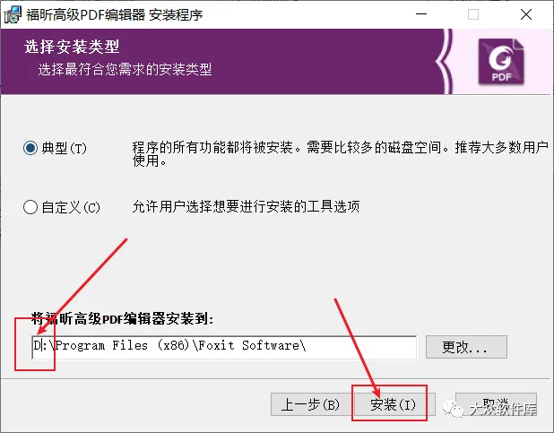 6.软件默认安装在C盘,直接将C改成D,然后点击安装;