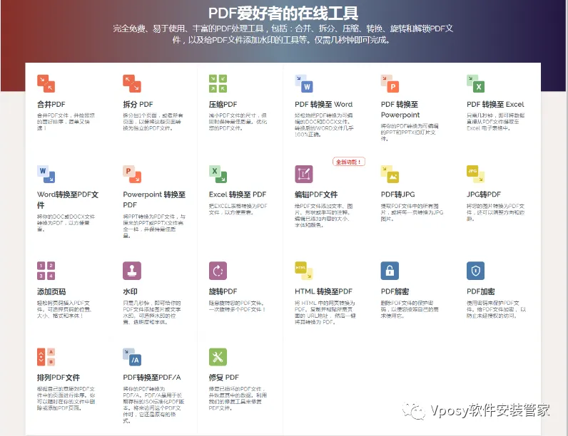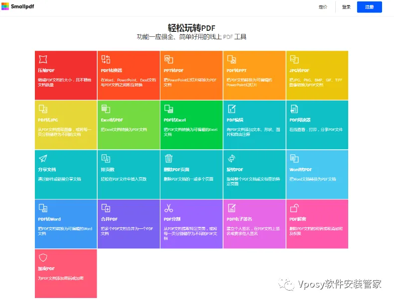 SmallPDF转换器集成数十种PDF操作于一体,PDF互转/解密/压缩/分割/合并