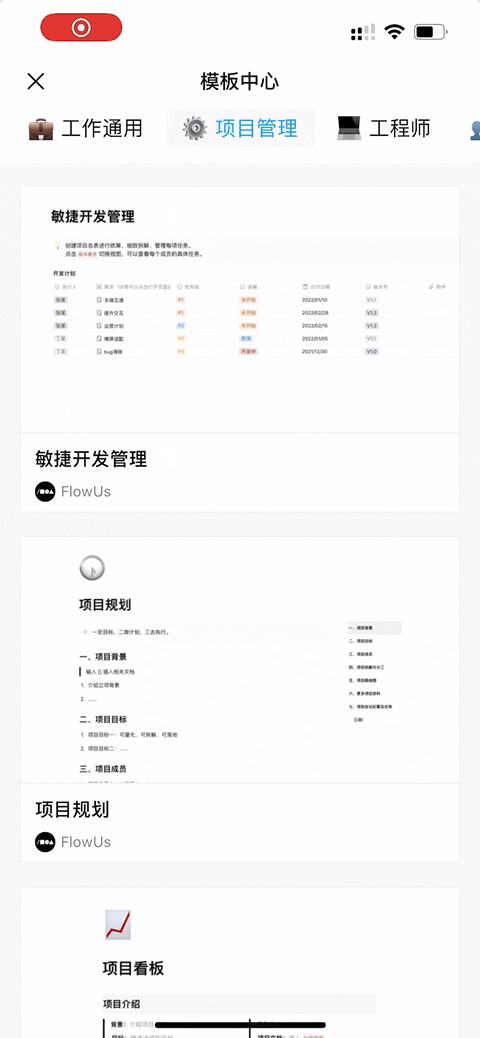 除了个人笔记本外,FlowUs也完全可以作为一个工作记事本。最绝的是,它根据不同的职业预设了不同的职业模版。